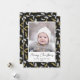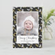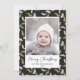 Enviar cartões de natal personalizáveis e personalizados a amigos, colegas e familiares em cartões com fotos simples, minimalistas, elegantes, divertidos, festivos e modernos! Uma bela variedade de ouro e folhas brancas de Mistletoe Pine Tree no fundo preto rodeia sua foto. A saudação "Feliz Natal" está escrita em caligrafia elegante, e abaixo apresenta sua mensagem de saudação personalizada do nome da sua família na tipografia moderna. Inverso para revelar um belo cheio Mistletoe Pine Tree de Natal.