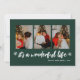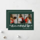 É um Cartão de Férias de 3 Fotos de Natal Verde Maravilhoso. Envie cartões de natal personalizáveis e personalizados a amigos, colegas e familiares em cartões de estilo simples, chic, elegantes e modernos de design fotofestivo, minimalista natural! Abaixo, a caligrafia apresenta sua mensagem de saudação personalizada na tipografia moderna.