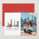 Convocando todos os amantes da cidade de Nova York! Este design elegante e minimalista apresenta cinco marcos icônicos do horizonte da cidade de Nova York -- a Estátua da Liberdade, o Edifício Chrysler, o Edifício Empire State, o Edifício Flatiron e a Ponte de Brooklyn. Ele faz uma declaração elegante e única para seus cartões de Natal.