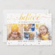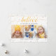 Altere a imagem, altere o esquema de cores! Divertido, certo? Esta design de Natal combina o tema tradicional com um efeito de texto moderno — sua primeira foto determina a cor da tipografia da escrita "BELIEVE", assim como os flocos de neve e faíscas! Este estilo garante que a tipografia e os sotaques impressos correspondam à sua foto. A linha de texto abaixo de "BELIEVE" - "no Mágico da Estação" - pode ser personalizada, assim como os nomes (é claro!) e a data. Não se esqueça de olhar para o lado inverso também, onde seus nomes aparecem uma segunda vez como criador deste cartões de natal divertido!