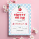 Ela é a Cherry on Top - O convite personalizado para o Chá de fraldas Celebre sua mais doce chegada com este charmoso convite para o chá de fraldas "Cherry on Top"! Apresentando um tema de cereja balbuciosa, tipografia inspirada na retro-inspiração, e uma fronteira de gingham azul suave, este encantador convite dá o tom perfeito para uma celebração alegre. Personalizado com o nome, os detalhes do evento e as informações de RSVP da honra, este design é tão atencioso quanto adorável. Acentuado com flores alegres de cereja e fontes divertidas, é ideal para um chá de verão ou uma reunião ao estilo piquenique.