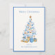 Cartão De Festividades Elegant Blue Script Watercolor Christmas Tree