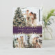 Elegant purple and gold photo Christmas card featuring poinsettia, holly and red berries. Easily personalize this botanical holiday card with your photos and text.