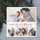 Cartão De Festividades Elegante 4 Colagem de Fotos, Natal Branco Vermelho