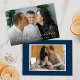 Mande cumprimentos festivos com este Cartão de Férias Feliz Natal 2 da Caligrafia Elegante. A frente exibe uma foto horizontal da família com sangramento de cheio sobreposta com "Feliz Natal" em um roteiro elegante de caligrafia, com seu nome de família e ano colocados embaixo. O verso inclui uma segunda foto horizontal sobre um fundo profundo do marinho, acentuado com um delicado padrão de neve branco pontilhado. Um design de Natal polido e eterno.