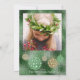 Elegante ornamentos faux rhinestone verdes pendurados com um sentimento tradicional de Feliz Natal da nossa casa para a sua tipografia. Adicione uma foto favorita no verso desta placa para personalização. Os ornamentos de brilho acentuado acrescentam à beleza deste design no verso deste cartão.