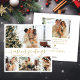 Cartão de Férias de Natal do Dourado Script 4 para Colagem de Fotos do Elegante Moderno "Saudações da temporada". Esta na moda, placa de feriado minimalista, apresenta quatro (4) fotos na frente e uma (1) fotos no verso. A frente mostra uma saudação "da estação" esbranquiçada em um elegante roteiro com letra de ouro, num fundo branco limpo. O verso inclui um texto de saudação personalizável com um motivo cardíaco e um modelo para mais uma foto. Perfeito por compartilhar suas memórias de feriado com familiares e amigos, este cartão personalizado é uma forma festiva de espalhar alegria nesta época de Natal.