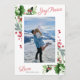 Espalhe a alegria de férias com este cartão festivo de férias - Elegante Paint Joy Peace Love | Cartão de Feriado Editável Original - com sua foto favorita cercada por uma coloração d'água pintada à mão, folhas de samambaia verde, rosa macio e vermelhos Mude a saudação do Feliz Natal para feriados felizes, Feliz ano novo etc. A frente tem uma foto. Uma carta única e muito divertida que certamente espalhará alegria de feriado! Watercolor Holly Reds Greens Side Wreath Photo Holiday Card