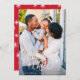 Este Cartões de foto de Natal festivo apresenta uma foto vertical do quadro de cheio (também conhecida como "sangramento de cheio") e uma bela saudação de roteiro em branco. A saudação à frente diz "Feliz Natal". O dorso tem um padrão de flocos de neve branco e azul claro. Você também pode adicionar outra foto e/ou texto adicional ao verso.