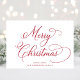 Cartão Elegante de Natal com "Feliz Natal" apresentado num roteiro de caligrafia na moda vermelho. Adicione sua saudação personalizada e seu nome familiar em simples inscrições vermelhas modernas.