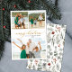 Elegante Winter Botanical Modern Calliographic 3 Photo Collage Cards de Natal. Este cartão de natal multifotógrafo festivo e minimalista apresenta uma colagem fotográfica bonito de três (3), um texto de saudação de "Feliz Natal" que é escrito em um tipo de letra cursivo de cauda com letras maiúsculas de mão em ouro e branco. Nas costas, cor aquosa, folhagem botânica de inverno, bagas, folhas de eucalipto, agulhas de pinheiros e ramos. Bonito cartão de boas-vindas para sua família e amigos na temporada de festas de inverno.