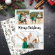 Elegante Winter Botanical Modern Brush Script 3 Photo Collage Cards de Natal. Este cartão de natal multifoto minimalista e festivo apresenta três (3) imagens bonito de colagem, um texto de saudação "Feliz Natal" que é escrito com caligrafia cursiva ou tipografia letras negrito com guiamento a preto e branco. No verso, folhagem botânica de cor aquática de inverno, folhas de eucalipto, bagas, agulhas de pinheiros e ramos. Bonito cartão de boas-vindas para sua família e amigos na temporada de festas de inverno.