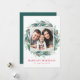 Mande cartões de natal para seus entes queridos em estilo com nosso cartão de férias da Elegante Watercolor Holly Berry Wreath. O cartão festivo mostra a sua fotografia enquadrada num quadro branco quadrado com uma coroa aquática de férias com bagas ocas e folhagem verde esmagadora. Personalize a frente do cartão adicionando uma saudação personalizada e seus nomes em texto vermelho ou uma cor de sua escolha. O cartão com fotos de feriado se reverte para um fundo verde estável com espaço para mais texto ou foto.