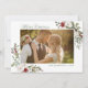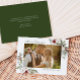 Espalhe um pouco de alegria de Natal com este cartão de Natal com uma design de moldura de cor-de-água verde de Natal com Poinsettia, bagas de Natal e rosas brancas.