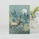 Cartão De Festividades Elk na Floresta com Lua Cheia e Neve Aquarela