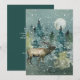 Mande suas cartões de natal com esse alce majestoso em uma floresta verde com uma neve mágica debaixo de uma lua de cheio. A dentro do cartão inclui um modelo de saudação que diz "Paz na Terra. Os melhores votos para uma maravilhosa temporada de férias e um novo ano cheio de paz e felicidade." e modelo de encerramento para você se adaptar.