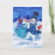 Este cartão mostra um boneco de neve e uns aplausos snowlady no feriado com vinho tinto.
