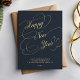 Cartão de férias de marinho azul escuro elegante com script de caligrafia de Feliz ano novo de ouro falso clássico. +++++++++++++++ Fácil de personalizar com o seu texto em ambos os lados. +++++++++++++++++++++++++++, OBSERVEM que a cor de fundo é editável. Você pode alterá-la depois de selecionar a opção PERSONALIZAR abaixo do menu PERSONALIZAR TI. Se você não se sentir à vontade mudando-o, peça ajuda ao Zazzle Live Design ou ao designer.