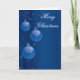 Bonito cartão de Natal com ornamentos de bola suspensos contra um fundo de espirais voadas, flocos de neve e rastros de estrelas. Esta versão em tons azuis. O texto na frente e no interior da placa é totalmente editável. Alterar para sua própria mensagem ou excluir o texto nos campos de texto.
