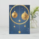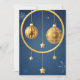 Os ouros Elegantes e as estrelas suspendem sobre fundo azul com designs de floco de neve, apresentando um humor festivo.