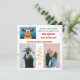 Cartões de foto de Natal moderno, elegante, engraçado e fofo com duas fotos de Natal personalizadas e uma imagem de Rudolph the Reindeer, os textos "Oh, querido, OUTRO ano ruff!" + "Aqui está um mais feliz à frente!" + "Feliz Natal e Feliz ano novo 20YY" + "Amor" junto com nomes de familiares para você personalizar. Com um moderno borrifo de flocos de neve brancos e prateados na frente. Também com uma ilustração de uma pátria ouro - com estrelas pequenas - festejada como se à volta de uma árvore de Natal, junto com um coração branco com um contorno vermelho. Certifique-se de reescrever a carta atrás. Observe que você também pode excluí-lo se desejar!