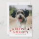Traga viva a alegria da temporada de festas com nossos cantos de Natal engraçados e temerários! Capturando perfeitamente o espírito viscoso de seus animais de estimação, essas cartas contêm uma frase humorística de "definir travesso" em uma impressionante letra de gradiente vermelho. Adaptadas com a foto do seu animal de estimação, estampas adoráveis de pata, seu nome, e no ano atual, essas cartas são uma maneira memorável de compartilhar alegria de Natal!