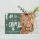 Uma saudação de Natal legal, original e engraçada em verde, All não é tão calmo roteiro moderno com galhos de pinheiro, flocos de neve e decoração de bola de natal. Adicione sua foto de família e sua mensagem engraçada.