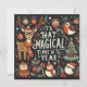 Design personalizável aconchegante com a frase "Feliz Natal da família Johnson" que você pode mudar. Uma design de Natal vibrante e festiva cheia de raposas e robins coloridas e veados. Elementos de férias inspirados na escandinávia. A animada mensagem "É aquele momento mágico do ano" é cercada por ornamentos feitos à mão, canetas doces, estrelas, flocos de neve e folhagem decorativa, criando uma atmosfera sazonal alegre e aconchegante. Esta ilustração combina uma sensação rústica e artística com uma estética de férias moderna, perfeita para cartas, decorações e presentes. Mude a foto atrás e o texto e faça-a sua!