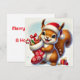 Celebre as festas de fim de ano com este cartão alegre que apresenta um esquilo animado segurando uma meia de Natal recheada de presentes e guloseimas. Um design encantador para espalhar alegria e calor nesta época do ano. Adicione sua mensagem personalizada.