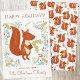 Um esquilo divertido com uma bolota. Arte original de Nic Squirrell. Altere a saudação e o nome para personalizar. Ideal para feriados de outono e inverno, Dia de Ação de Graças, Natal e muito mais. A parte de trás apresenta um padrão de esquilo correspondente.