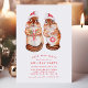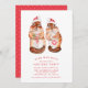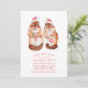 Este design de Natal apresenta esquilos de aquarela vestindo chapéus de Papai Noel. Coloque sobre um fundo branco com um backer de bolinhas vermelho e branco. Personalize este design personalizado com os seus próprios detalhes de festas de férias. Perfeito para uma festa de Natal corporativa ou para uma família.