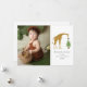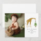Ilustração de uma girafa no topo de uma árvore de Natal com uma estrela. Personalize com sua própria foto, nome e ano.