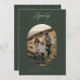 Envie desejos calorosos com este cartão de feriado religioso verde-chico com uma foto alegre da família, enquadrada por uma elegante forma oval. A design captura o espírito do Feliz Natal e da gratidão cristã.