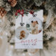 Envie votos calorosos em um estilo encantador com este cartão de Natal clássico rústico, apresentando greenery em aquarela e molduras de imagens ornamentais caprichosas. A frente apresenta sua foto favorita da família emoldurada por acessórios festivos, enquanto o verso inclui espaço para uma mensagem sincera para os entes queridos perto e longe. Uma mistura perfeita de aconchegante e elegante, este design captura a magia da temporada com um toque pessoal.
