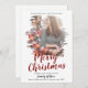 Esta família vermelha, escovada, de três cartões de fotos de gravidez é o cartões de natal perfeito e simples. O design único e artístico apresenta sua foto em pincéis pintados por aquarelas com caligrafia moderna em vermelho e branco. Personalize o cartão com sua foto de gravidez, nomes e data de vencimento do bebê.