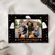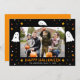 Envie saudações de Halloween para amigos e familiares com nossos cartões de fotos de Halloween fofos! O design apresenta sua foto cercada por fantasmas desenhados à mão e estrelas em tons de laranja, amarelo e branco. "Feliz Halloween" é exibido em texto manuscrito em laranja negrito para um toque alegre da temporada. Personalize a frente do cartão de Halloween assustador adicionando seu nome e o ano. Perfeito para compartilhar desejos festivos com os entes queridos durante a temporada de Halloween.