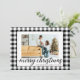 Cartão De Festividades Farmhouse Foto de Natal da Xadrez branca negra mod