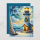 Cartão De Festividades Farol de Árvore de Natal Azul Costeiro Náutico