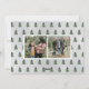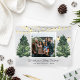 Este festivo "Desejamos-vos um Feliz Natal!" cartão com fotos de design de Natal apresenta uma cena de inverno chique rústica a partir de uma fazenda de árvore de Natal que enquadra um retrato familiar em forma quadrada favorito. Inclui um fundo de cinza nevado com luzes cintilantes suspensas e pinheiros verdes de cor d'água cortados recentemente. Personalize com a sua escolha de cumprimentos, o sobrenome da sua família e o ano. Um padrão de coordenação de pequenos pinheiros e uma colagem fotográfica de 2 fotos quadradas se veste na parte de trás da carta.