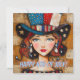 Um feliz cartão do quarto de julho. A frente diz: Feliz 4 de julho. As costas dizem: "Tenha um tempo maravilhoso." Esta é uma placa plana, de dois lados.