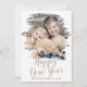 Este feliz ano novo bronzeado em revisão do retrato de cartão de feriado é o cartões de natal perfeito e simples. O design único e artístico apresenta sua foto em pincéis pintados com aquarela com caligrafia moderna em bege e branco. Personalize o cartão com 5 fotos da família, seu nome, nomes e ano. Inclua um ano na revisão ou boletim de notícias da família na parte traseira do cartão.
