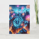 Um relógio gigante com torres noturnas sobre uma paisagem urbana iluminada vibrante com fogos de artifício coloridos da véspera de Ano Novo a explodir no céu noturno O texto de dentro é editável.