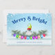 Um cartão de feriado alegre "Feliz e Brilho" com um pequeno pássaro sentado sobre uma série de luzes de feriado coloridas e seu nome comercial. A parte traseira do cartão apresenta a sua mensagem de feriado personalizada. Perfeito por enviar saudações da temporada a clientes, funcionários e a todos na sua lista.