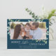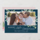 Esta feliz verde de Natal, o cartão de natal de natal de natal é o cartões de natal perfeito e simples. O design de inverno apresenta cor verde-d'água macia eucalipto e botânicos modernos, com borras de groselhas vermelhas clássicas. Personalize o cartão com sua foto de família, nomes e ano na frente e seu anúncio de nascimento de bebê no verso.