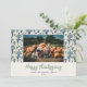 Feliz Cartão de Feriado de outono de Outono de Ação de Graças. Lindos padrões de cogumelos azuis e verdes. Personalize o cartão com sua foto, nome e ano - você pode alterar qualquer texto do cartão. Uma família adorável personalizou o cartão de Ação de Graças.