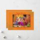 Deseje a seus amigos e família Happy Diwali com um cartão de saudações personalizado de Diwali com sua foto familiar cercada por uma intrincada borda design de ouro em um fundo laranja vibrante.