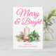 Espalhe a alegria de feriado com esta Feliz de script manuscrito branco-chic e o cartão de feriado Bright. O moderno design de caligrafia em uma matiz cor-de-rosa na moda oferece uma reviravolta divertida e moderna em artigos clássicos de natação. Personalize o dentro com sua própria mensagem para criar uma saudação atenciosa e festiva para a família, amigos ou clientes.