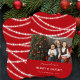 Cartão De Festividades Feliz e Brilho Foto de Natal Vermelho Chic