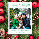Feliz e Brilho. Desejando à sua família um Feliz Natal e um Feliz ano novo de cartão com fotos personalizado. Carregue uma imagem da sua família, filhos, você e seu cônjuge ou um animal de estimação neste cartão de Natal personalizado e, em seguida, edite o texto no verso para adicionar sua própria mensagem personalizada. Arcos bonitos impressos no verso.