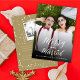 Este moderno e simples cartão de núpcias de natal/feriado apresenta a palavra 'Feliz e casado' em uma caligrafia de roteiros brancos que sobrepõe uma foto de sangria de cheio. A parte traseira da placa tem um fundo dourado com um padrão de pontos brancos de neve. Algum texto, padrão e fundo podem ser alterados para qualquer cor de sua escolha. Arte projetada / original por gordura*fa*estanho. Fácil de personalizar com sua própria mensagem de texto, nome, ano, foto ou imagem. Mais recursos de edição estão disponíveis na página 'editar design'. www.zazzle.com/fat_fa_tin www.zazzle.com/color_therapy www.zazzle.com/fatfatin_blue_knot www.zazzle.com/fatfatin_red_knot www.zazzle.com/fatfatin_mini_me www.zazzle.com/fatfatin_box www.zazzle.com/fatfatin_design www.zazzle.com/fatfatin_ink